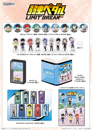 長年に渡り、高い人気を誇るTVアニメ『弱虫ペダル』シリーズのなかでも、3月に放送終了したばかりという最新作TVアニメ『弱虫ペダル LIMIT BREAK』。「eeoくじ」はもちろん、GraffArtイラストを使用した新作グッズを購入して、TVアニメ『弱虫ペダル LIMIT BREAK』を、そして『弱虫ペダル』シリーズをこれからも応援していきましょう!