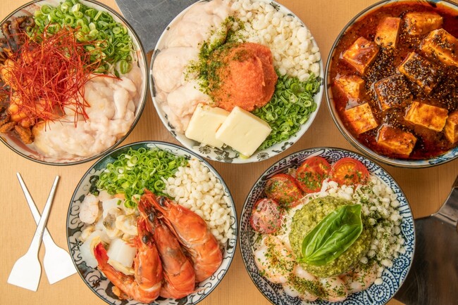 その発想のもと、名物のもつ鍋をはじめ、博多名物の水炊き、ここ数年人気高止まりだった痛風鍋などを、大胆にもんじゃ焼きへと変身させました。さらに、同じくダイヤモンドダイニングが運営する肉バル「ベルサイユの豚 池袋」ともコラボ、パスタ&リゾット風のイタリアンなもんじゃ焼きも多数ラインナップしています。