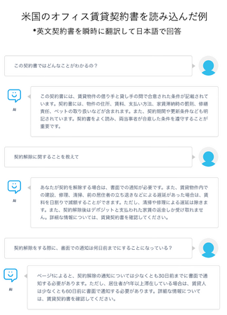●複数の言語に対応しているため、元の文書が外国語で書かれたものであっても、日本語でのやりとりが瞬時に可能です。