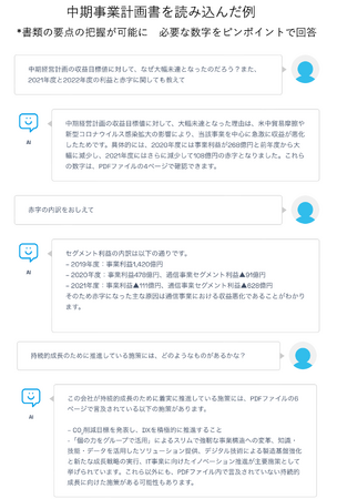 【株主総会で提出された企業の中期事業計画書を読み込ませてみた場合】