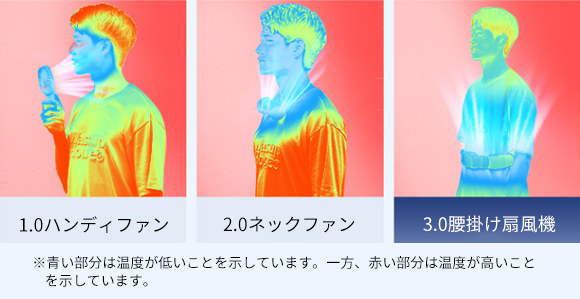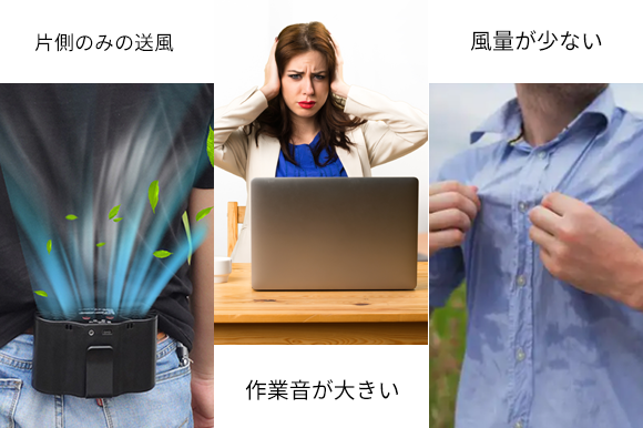 複数のファンが同時に送風することで、腰周りに安定した強力な気流を形成し、涼しい風を素早く送り出します。