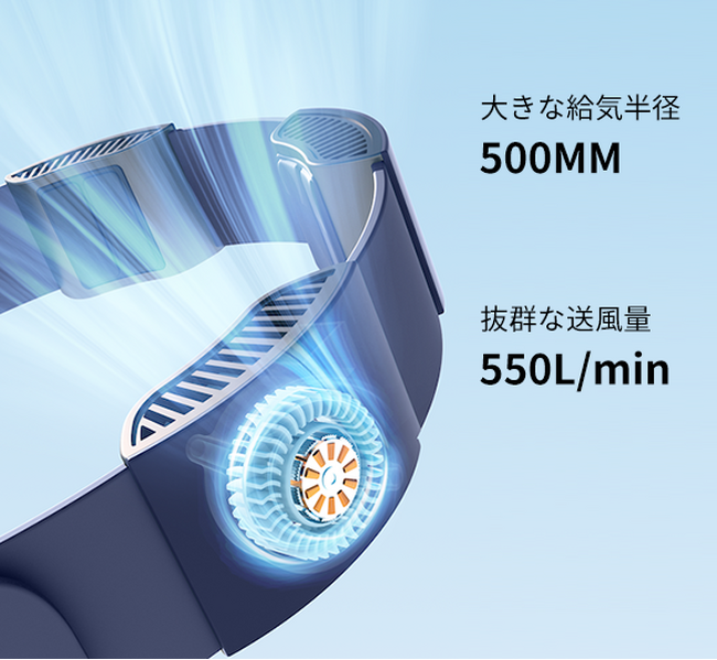 新たな風力タービン技術により、550L/minの風量を全方向に均一に吹き出し、瞬時に涼しくなります。