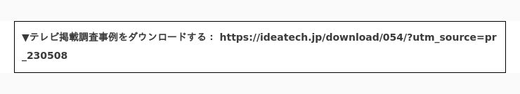 ▼「テレビ掲載調査事例」をダウンロードする:https://ideatech.jp/download/054/?utm_source=pr_230508