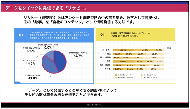 ワンストップでリサーチデータマーケティングを実現する「リサピー(R)️」(https://ideatech.jp/service/research-pr)を運営する株式会社IDEATECH(本社:東京都港区、代表取締役社長:石川友夫)は、PR・マーケティングご担当者様の「調査(リサーチ)」および「PR」への理解促進と支援を目的にした、「テレビ掲載調査事例」を無料公開しました。