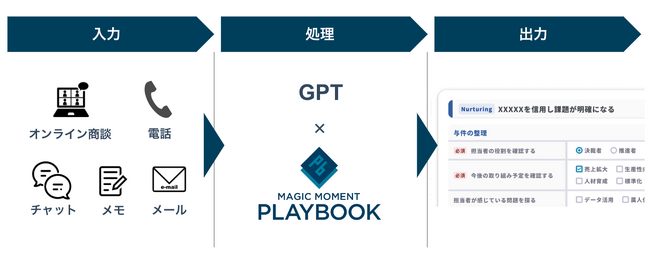 株式会社Magic Moment(本社:東京都港区、代表取締役CEO:村尾祐弥、以下「当社」)は、大規模言語モデル「GPT(※1)」の API 連携を活用した、セールスエンゲージメントプラットフォーム「Magic Moment Playbook」の新機能(β版)を開発しました。今後、ビジネスシーンでの活用については、倫理的側面・法的観点を精査の上、慎重に検討して参ります。