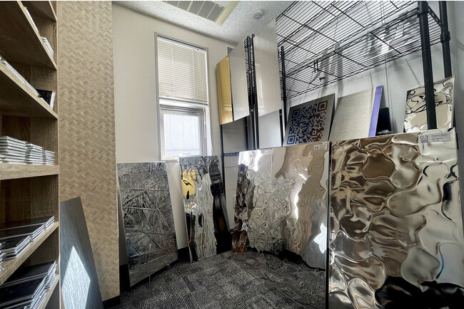 オープン当初は壁面・天井パネルや各種サンプルを中心にご用意しておりますが、今後、展示内容を増やして参る予定です。 また、デザイニングステンレス鋼、デザイニングチタンに加え、新たなメッキ鋼板(FeLuce (R)︎)やその他の金属もご用意して、デザインのイメージ創出にご検討いただける場所としてお役に立ちたいと思っております。
