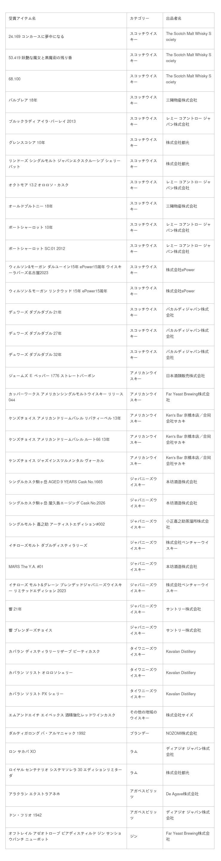 【TWSC2023洋酒部門 最高金賞受賞アイテム一覧】