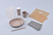 「りんごの搾りかす」「みかんの皮」「卵殻」「ホタテの貝殻」を活用した紙製品やフィルム、成形品など。