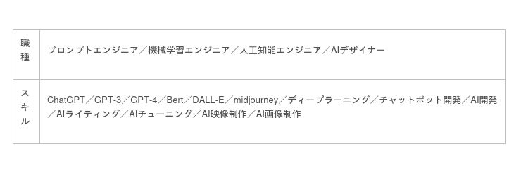 株式会社クラウドワークス(本社:東京都渋谷区 代表取締役社長 兼 CEO:吉田 浩一郎 以下「当社」)が運営する日本最大級のクラウドソーシング「CrowdWorks(クラウドワークス)」では、ChatGPTやGPT-4などに関連する案件の増加に伴い、クライアント向けに4つの仕事カテゴリ、ワーカー向けに4つの職種・13のスキルを新たに追加しました。今後更なる増加が見込まれるAI(人工知能)・機械学習・ChatGPTの仕事において、ワーカーとクライアントのマッチング促進を目指します。