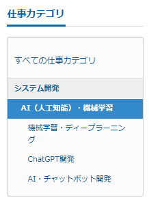 AI(人工知能)・機械学習関連・ChatGPTというキーワードを含む案件の受発注を促進・サポートするため、新たに追加したカテゴリの詳細は以下となります。