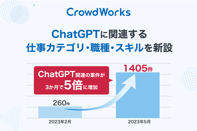 クラウドワークスのChatGPT案件が急増、3カ月で5倍(1,400件)に “ChatGPT” 仕事カテゴリ・職種・スキルを新設