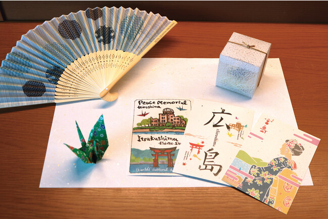 デーツチョコレートは、デーツをまるごと1つ使用し、隠し味として「オタフクお好みソース」を加えることで広島ならではの逸品に仕上げました。広島県のソウルフード「お好み焼き」に欠かせないオタフクお好みソースには、ドライフルーツ「デーツ」が原材料として使用されています。ポストカードは、広島平和記念公園に捧げられた折り鶴を用いて作られた、再生紙を使用しています。扇子には、G7広島サミットとホテルグランヴィア広島の名前を印字しております。また折り鶴は、スタッフが心を込めて丁寧に折ります。