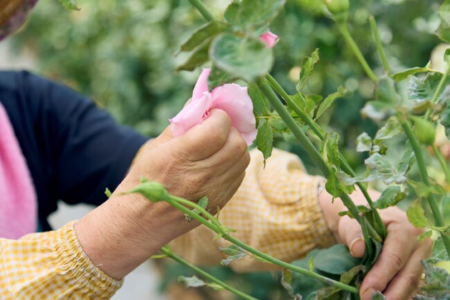 手摘みによる採取で、バラを有効利用