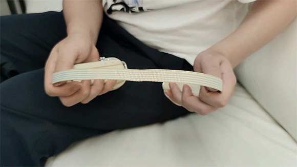 白と黄色のスタイリッシュなストラップは、型崩れしにくい素材で、なめらかな肌触りとなっております。