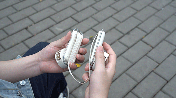 左右のファンはマグネットで合体可能!バッグのチェーンにぶら下げたり、指に引っ掛けたりとスタイリッシュにお使いいただけます。