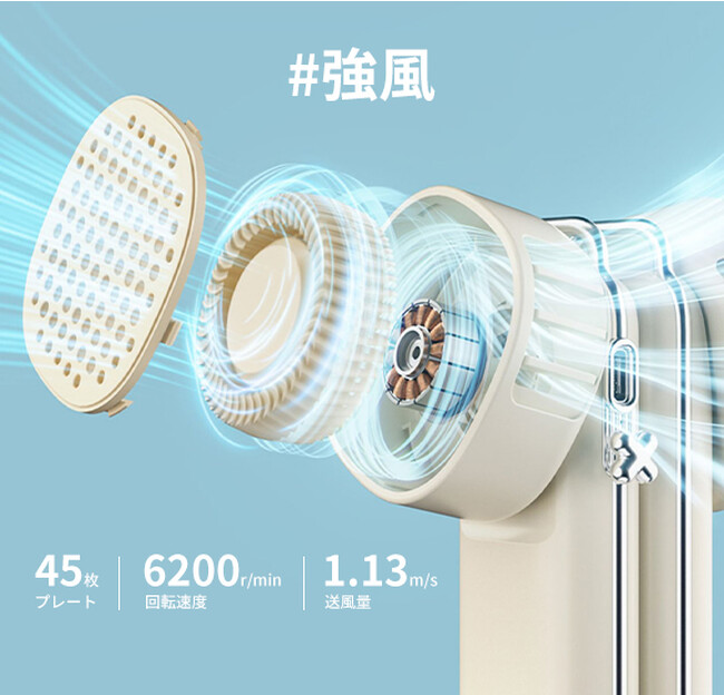 ポイント5: 45枚のタービンブレードを搭載し、静音ながら強風を届けます。
