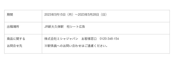 JR 新大久保駅にて5月15日(月~5月28日(日) まで期間限定展開!