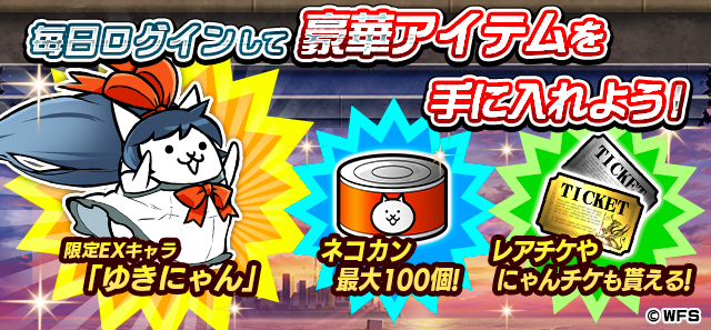 期間中に7日間ログインすると、コラボ限定EXキャラクター「ゆきにゃん」が手に入ります。
