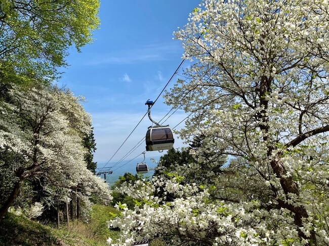 ゴヨウツツジ(五葉躑躅)は、枝先に5枚の葉が輪生状につくことからその名で呼ばれ、別名は「シロヤシオ」。敬宮愛子内親王のお印としても広く知られており、5月から6月にかけて大木一帯に花を咲かせます。今年は例年に比べ花芽が多く、最盛期には見渡す限り純白の花に囲まれた心躍る空間をお楽しみいただけます。今年の開花時期は、例年より早くゴンドラ中腹辺りより見頃を迎え、今後は山頂にかけて順次開花が予想されます。開花から約1週間ほどで見頃はピークとなり、辺り一面に純白で可憐な花々が咲き誇ります。