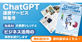 「ChatGPT連携サービス特集号」(PDF)をお求めの企業担当者様は、 以下お問い合わせフォームに必要事項記入の上、 お問い合わせ内容欄に「ChatGPT連携サービス特集号」希望と記載し送信ください。