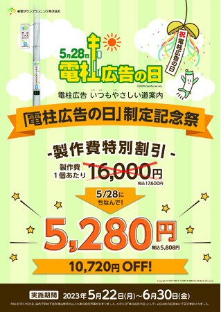 5月28日の「電柱広告の日」にあわせて、電柱広告の製作費が5,280円(税込5,808円)に大幅割引!