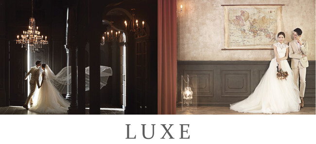 ブライダルフォトスタジオLUXEは今までの日本にはなかった新しい世界観で、これから結婚を予定されている方や結婚を心に刻むだけではなく何か記念に残したい方の為に「お⼆人の結婚の証をカタチにする」そんな想いを込めた素晴らしい一枚をお届けします 。ヴィンテージで優雅な雰囲気を持つ撮影セットは、ブライダルフォト世界最高峰と言われる海外スタジオデザインで日本最大クラスの25シーンを実現しました。LUXEのポートレートが日本のウエディングフォトに新たな価値をご提供いたします。