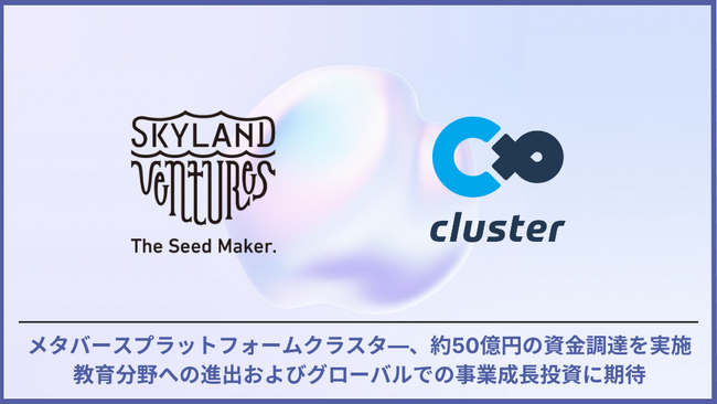シードスタートアップ投資をメインに行うベンチャーキャピタルファンド、Skyland Ventures (本社:東京都渋谷区、パートナー・CEO:木下慶彦、以下SV) は、イベント累計動員数2,000万人を超える、国内最大級のメタバースプラットフォーム「cluster」を運営するクラスター株式会社(本社:東京都品川区、代表取締役CEO:加藤直人、以下「クラスター」)に、シリーズDファーストクローズ・セカンドクローズの合計で51.5億円の資金調達ラウンドに参加し、追加投資を実施したことをお知らせします。今回の資金調達ラウンドではSVの他、スパークス・アセット・マネジメントをリード投資家とし、SBIインベストメント、オリックス、三井住友信託銀行、NOBUNAGAキャピタルビレッジが参加しています。