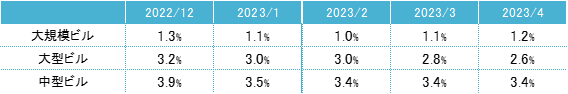 ※大規模ビル:1フロア面積200坪以上、大型ビル:同100坪以上200坪未満、中型ビル:同50坪以上100坪未満