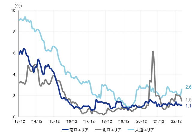 全規模ビル 主要エリア 空室率:「大通」大幅に上昇
