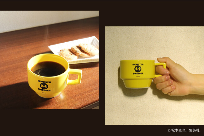 可愛いレトロカラーのボディに、カフカとレノがかつて所属した「モンスタースイーパー社」のロゴをデザインしたマグカップです。同商品同士でのスタッキングも可能です。
