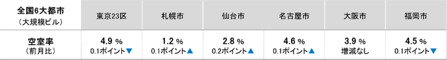 その他の全国6大都市の大規模ビル(東京・札幌・仙台・名古屋・大阪・福岡)のマーケットデータをまとめた各都市のプレスリリースは、下記リンク先よりダウンロードいただけます。