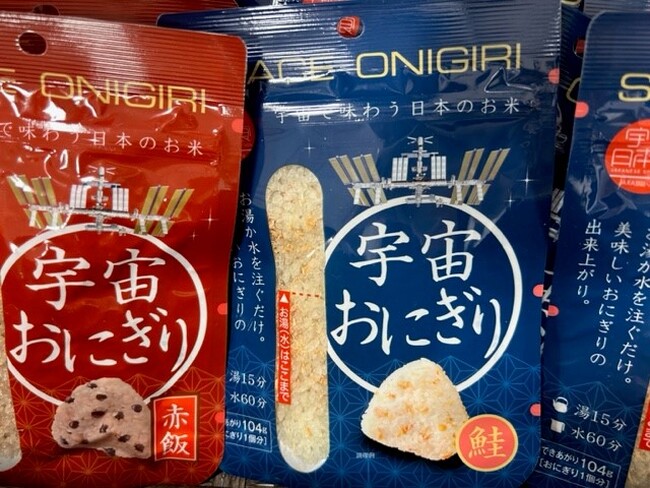 国際宇宙ステーション(ISS)長期滞在用の食事で使用された、お湯を注ぐだけで出来上がる鮭おにぎりです。