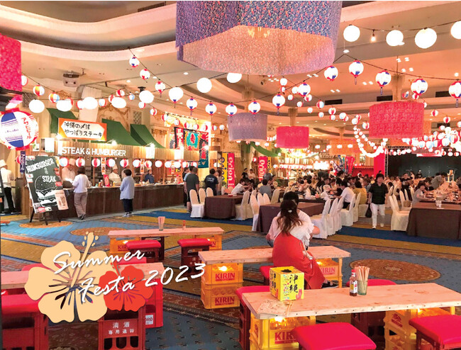 夏本番を迎える7月下旬、ホテルクリスタルパレスでは例年好評の大型サマーフードイベント『サマーフェスタ2023』を開催いたします。フォトジェニックな装飾の数々と、風情感じる屋台で楽しむ和・洋・中のバラエティーに富んだお料理、先付けの前菜、そして夏にぴったりのドリンク類をご用意いたします。