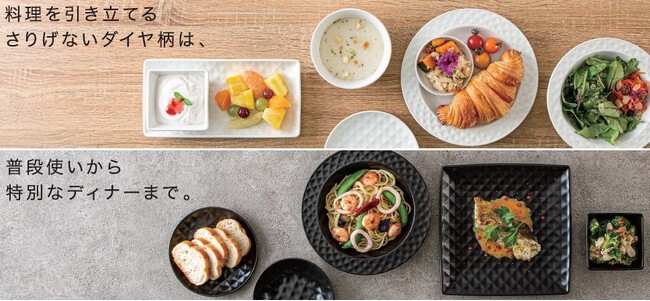 この度ニトリは、日常使いから自宅での食事会やパーティでも使えて、料理をよりよく引き立ててくれる、ダイヤ柄のおしゃれな食器シリーズを開発いたしました。来客時のみならず、普段の食器を変えることで、いつもの食卓もより華やかになります。