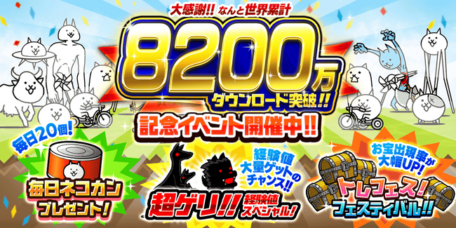 「にゃんこ大戦争」8200万ダウンロード突破!記念イベント開催のお知らせ