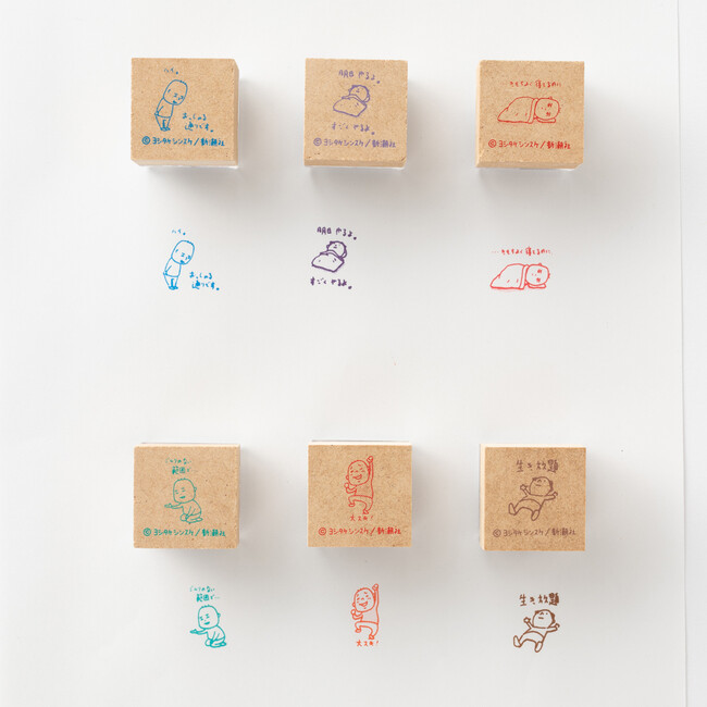 今年絵本作家デビュー10周年を迎え、「ヨシタケシンスケ展かもしれない」が全国巡回中の、大人気絵本作家ヨシタケシンスケさん。エッセイ『思わず考えちゃう』と『欲が出ました』に収録のユーモアあふれるイラストを使用した浸透印タイプのスタンプです。