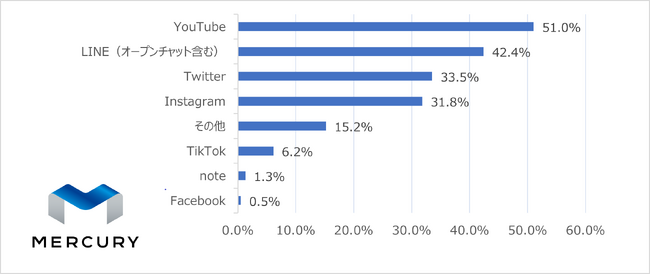 その他、LINE(オープンチャット含む)もYouTubeに追随する結果となった。
