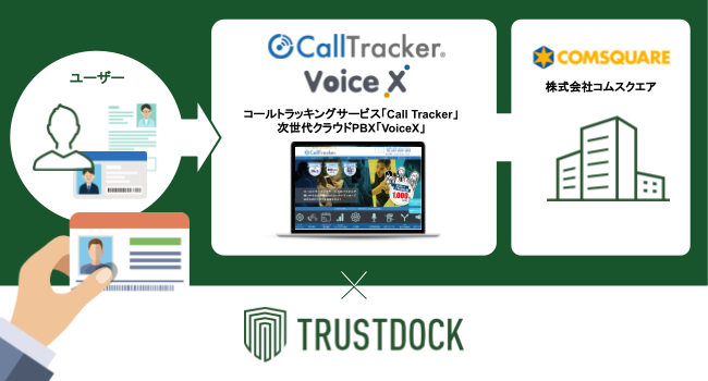 株式会社TRUSTDOCK(本社:東京都千代田区、代表取締役:千葉 孝浩、以下 TRUSTDOCK)は、株式会社コムスクエア(本社:東京都中央区、代表取締役:上嶌 靖、以下 コムスクエア)が運営・提供する「Call Tracker」「VoiceX」に、犯罪収益移転防止法に対応したeKYC本人確認サービス「TRUSTDOCK」を導入したことをご報告します。