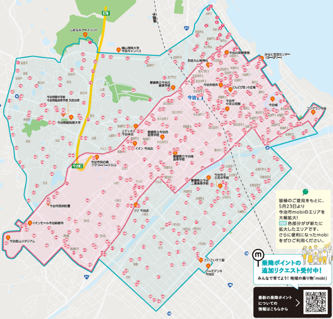 Community Mobility株式会社(本社:東京都目黒区、代表取締役社長:村瀬茂高)は、愛媛県今治市において、2月1日(水)にサービス開始したエリア定額乗り放題のAIシェアリングモビリティサービス『mobi』(https://travel.willer.co.jp/maas/mobi/)を、本日5月23日(火)よりエリア拡大しました。