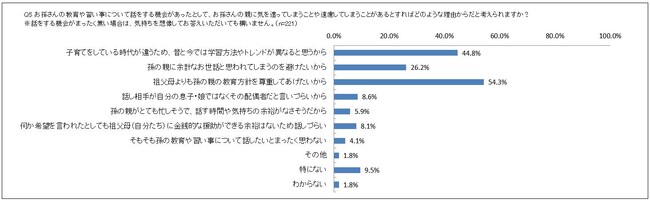 今回調査を終えて印象的だった点は大きく二つあり、一つ目は「孫の親に遠慮してしまう・気を遣ってしまう理由」について伺った際、「孫の親の教育方針を尊重してあげたいから」という選択肢に最も多くの票が集まったことでした。