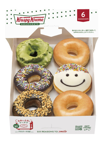 記念ボックスでしか楽しめないスマイルドーナツ(ホワイトチョコ×カスタードクリーム)と、オリジナル・グレーズド(R)、人気のドーナツを詰め合わせた6個入り。期間・数量限定のボックスです。