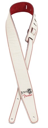 今回、John 5のファンへの想いに応え、『John 5 Ghost Telecaster(R)』とともにシグネイチャーアクセサリーコレクションが発売されます。本コレクションは、赤のスエード裏地を備えたホワイトレザーストラップ、アークティックホワイトの10フィート(約305 cm)PVCジャケットとカスタム形状の赤色端子を備えたインストゥルメントケーブル、John 5のロゴとグラフィックをフィーチャーした351セルロイドピックセットをラインナップしています。