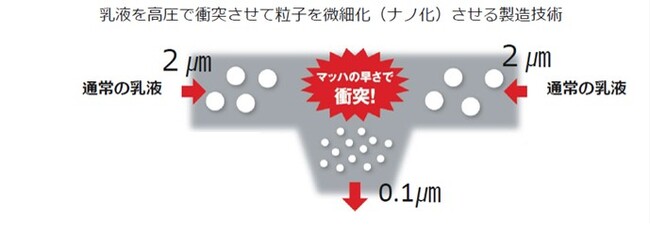 日本初※乳液を高圧処理し直接顔に噴霧できる技術を確立