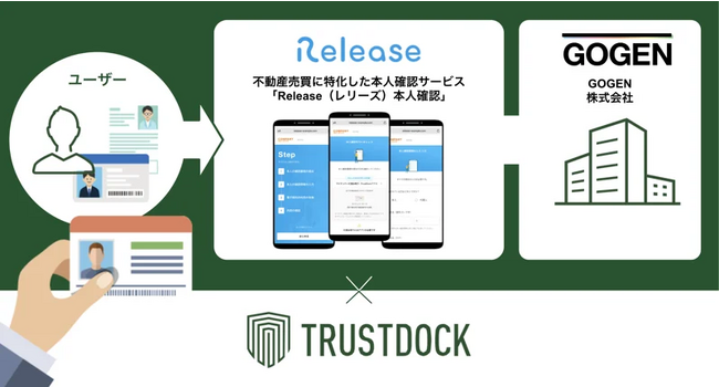 株式会社TRUSTDOCK(本社:東京都千代田区、代表取締役:千葉 孝浩、以下 TRUSTDOCK)は、GOGEN株式会社(本社:東京都港区、代表取締役CEO:和田浩明、以下 GOGENが運営・提供する「Release(レリーズ)本人確認」に、eKYC本人確認サービス「TRUSTDOCK」を導入したことをご報告します。