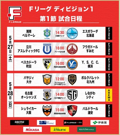いよいよ本日、Fリーグ2023-2024シーズンが開幕します!オープニングゲームは「湘南ベルマーレ vs. エスポラーダ北海道」!今シーズンのFリーグディビジョン1は、インターネットテレビ局「ABEMA」で毎節1-2試合、「FリーグTV powered by easysports」で毎節4-5試合を生中継いたしますので、ぜひご視聴ください!