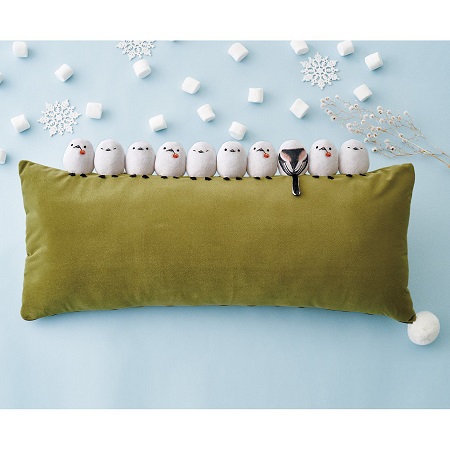 シマエナガが身を寄せ合いながら羽休めしている姿が楽しめるクッションです。
