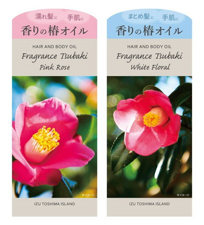 伊豆諸島の利島内で、椿の種子の収穫から搾油、精製、ろ過までの原料製造の全工程を行い作られた髪にも身体にも使えるマルチオイル。ピンクローズとホワイトフローラルの香り。