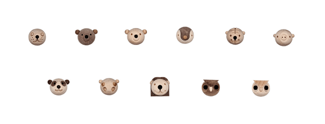 木製部分に、家具を作る際に出る端材を100%再利用。アザラシ、パンダなど全11種類。