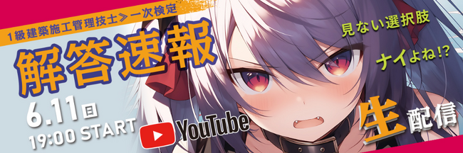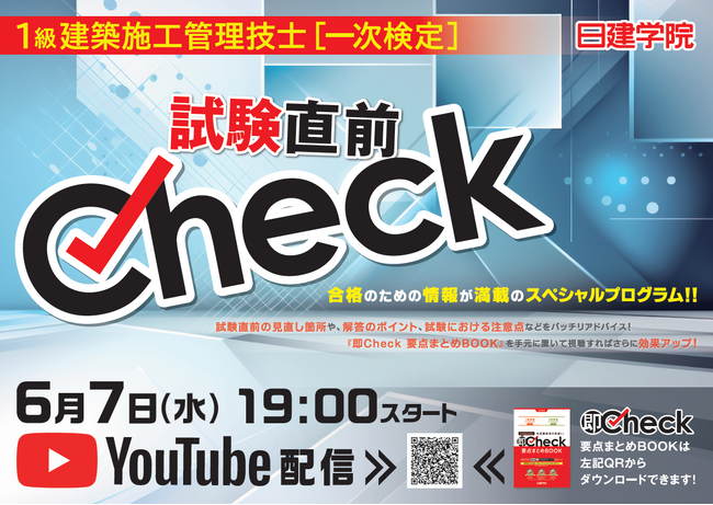 【1級建築施工管理技士】6月7日(水)『試験直前Check』をYouTube配信!「試験直前の見直し箇所」「解答のポイント」などをアドバイス