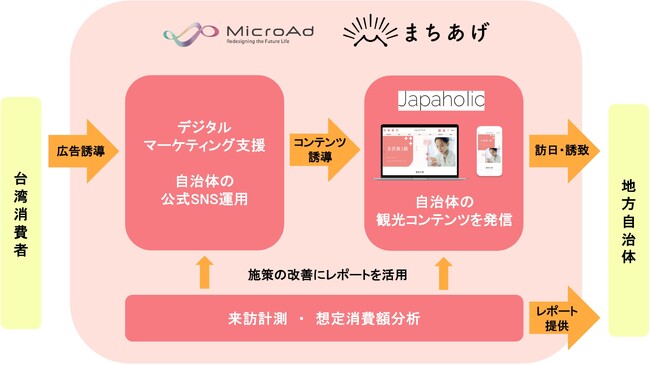 株式会社マイクロアド(本社:東京都渋谷区、代表取締役 社長執行役員:渡辺健太郎、以下マイクロアド)は、MicroAd Taiwan,Ltd.(本社:台北市、董事長:丸木勇人、以下、マイクロアド台湾)と連携し、地方自治体に特化したマーケティングプロダクト「まちあげ」において、台湾からの訪日観光客向けインバウンドプロモーションサービスの提供を新たに開始いたしました。